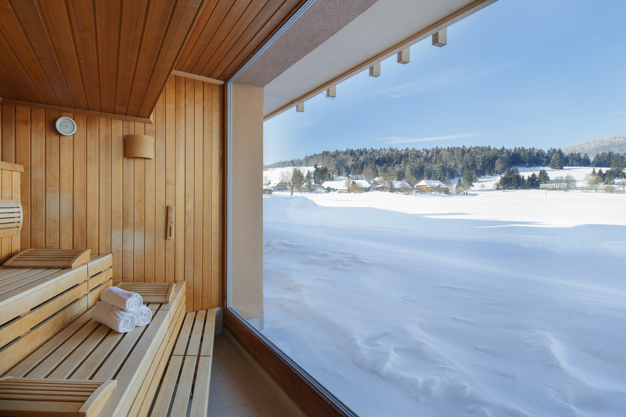 Idyllische Ruhe & endloser Blick über das Hochtal, direkt von einer der Saunen des Hochtal-Spa aus. Mit Mittagsjause, regionalem Gourmetmenü & tollem Service.zum Wellnesshotel