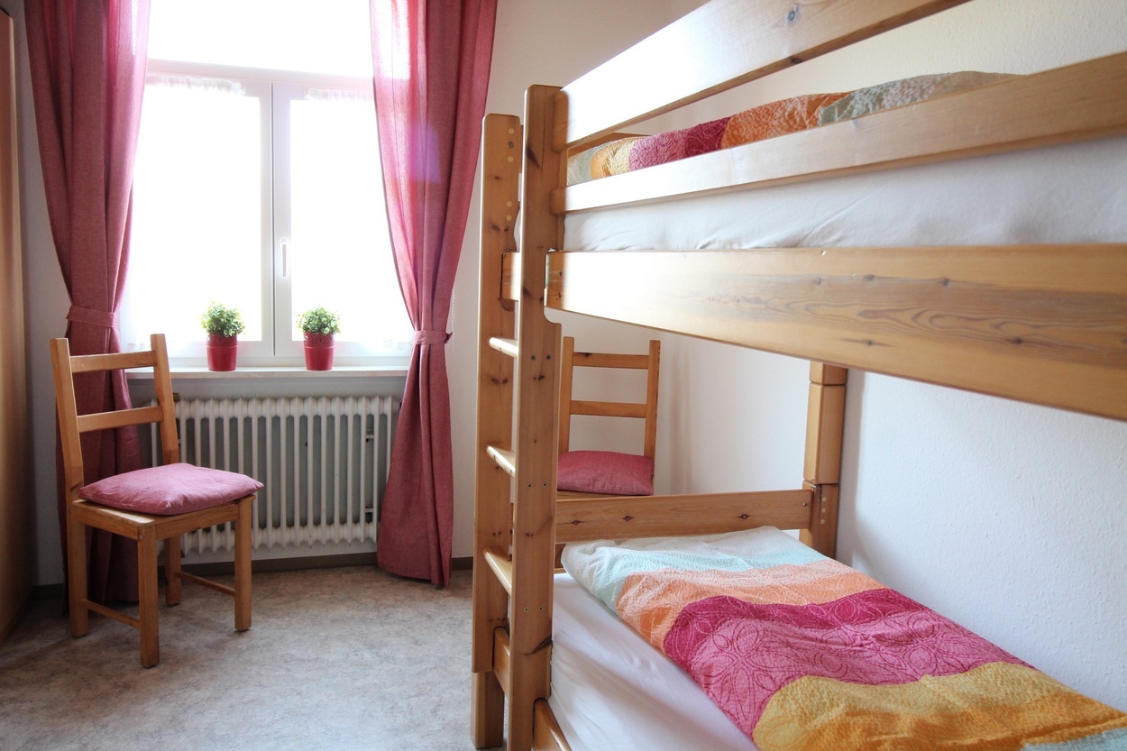 2 Schlaufräume, 1 Hochbett, Dusche/WC, gemütliche Wohnküche, Balkon, Nordseite