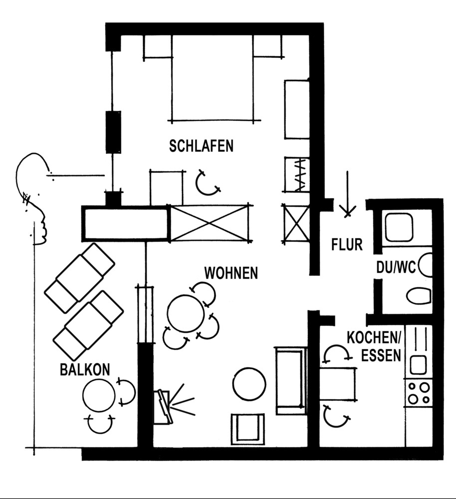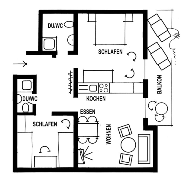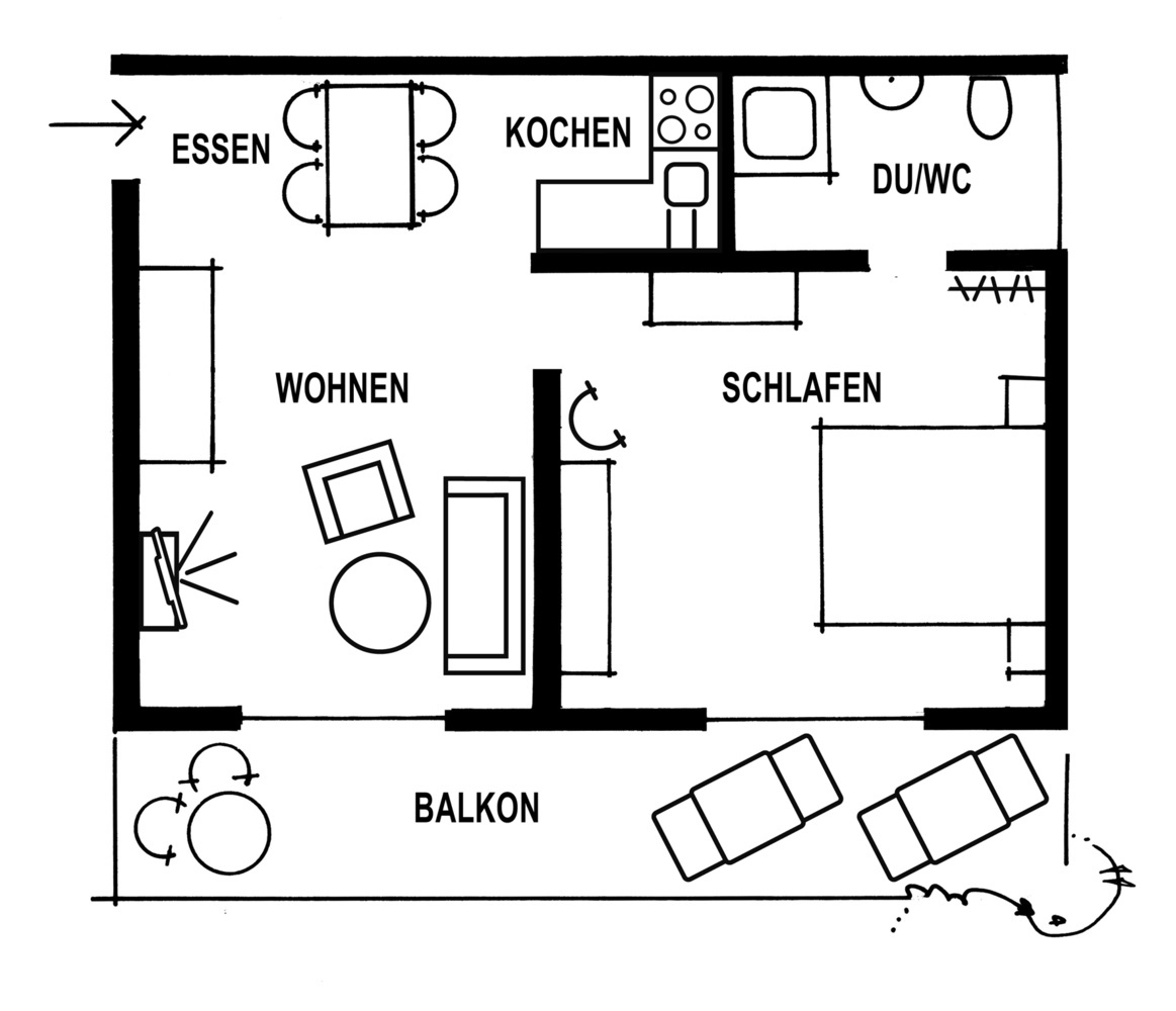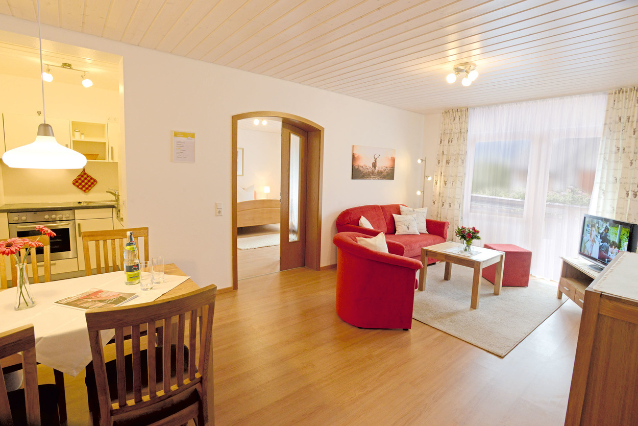 FerienwohnungenUnsere komfortabel eingerichteten, geräumigen Ferienwohnungen verfügen alle über ein Wohnzimmer, ein Schlafzimmer, eine Küche, ein Badezimmer, einen Balkon sowie WLAN und Kabel-TV. Die Nutzung des Fitnessraums und der Gästewaschküche sind inklusive. Es gibt 5 Wohnungen, die zwischen 50 qm und 70 qm groß sind und Platz für 2 bis 4 Personen bieten.