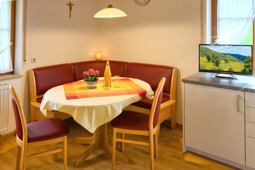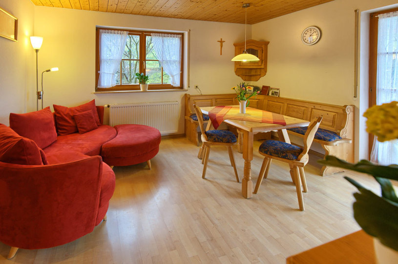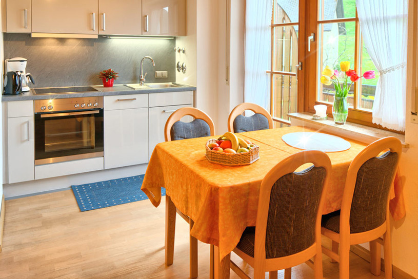 Im Inneren unseres Ferienhauses befinden sich 4 wunderschöne, komfortabel ausgestattete Ferienwohnungen. Morgens sorgt der Ausblick ins Grüne für einen guten Start in den Tag und Abends sitzt man gerne bei einem Schnaps aus der hauseigenen Brennerei zusammen.