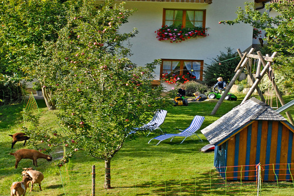 Das Gästehaus Lauby ist herrlich ruhig gelegen mit weitem Blick auf das hügelige Seitental Weilersbach. Von Natur umgeben kann man sich auf der großen Liegewiese mit Grillstelle, beim Plätschern des kleinen Bächleins, wunderbar erholen und mal alle Viere von sich strecken. Auch die kleinen Gäste kommen auf dem Bauernhof voll auf ihre Kosten: Beim Toben auf dem Gartenspielplatz, im Spielzimmer, beim Tischtennis, oder beim Streicheln unserer zahmen Tiere schlagen Kinderherzen höher.