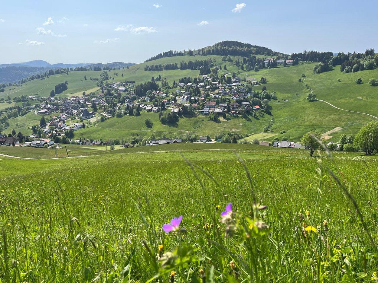 Ab auf den Berg! Naturnahe Unterkunft für Urlaub, Auszeit, Freizeit im sonnigen Hochtal im Südschwarzwald. Freistehend, in ruhiger Lage, auf 1.020 m Höhe mit Weitblick und viel Platz direkt am Bach.zur Unterkunft